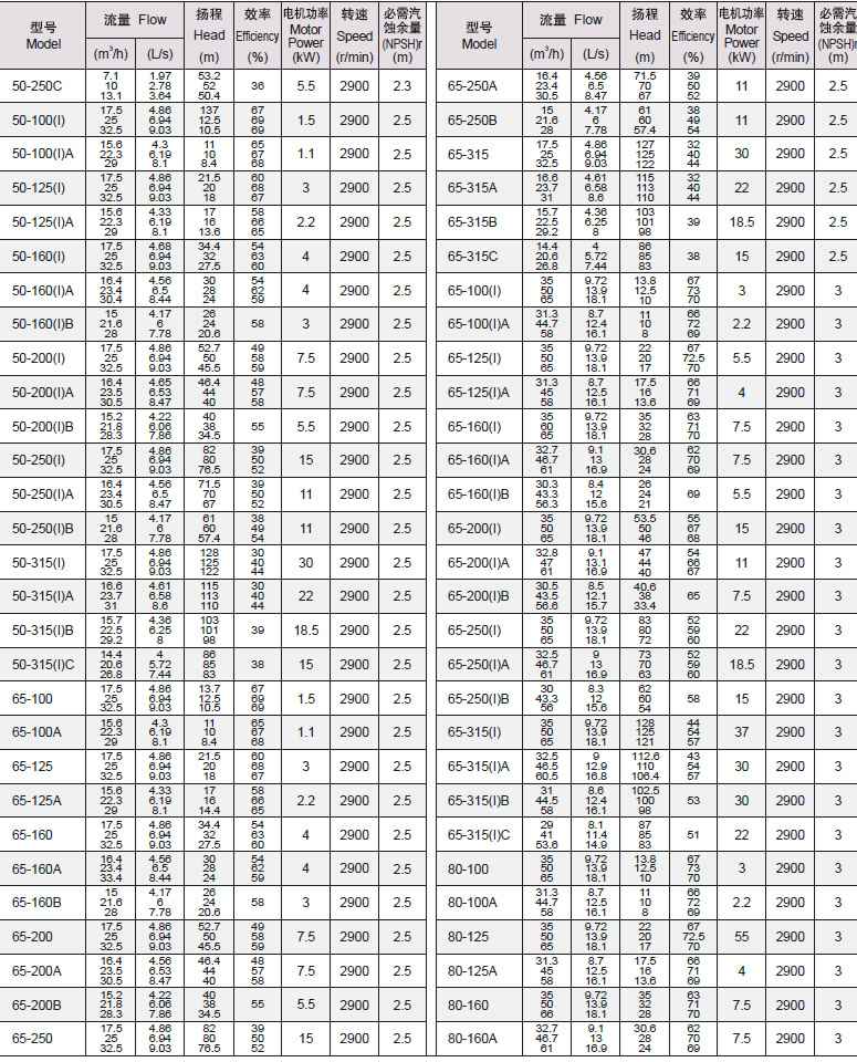 3、所输送介质中固体颗粒体积含量不超过单位体积的0.1%,粒度<0.2mm. 注:如使用介质为带有细小颗粒,请在订货时说明,以便采用耐磨式机械密封